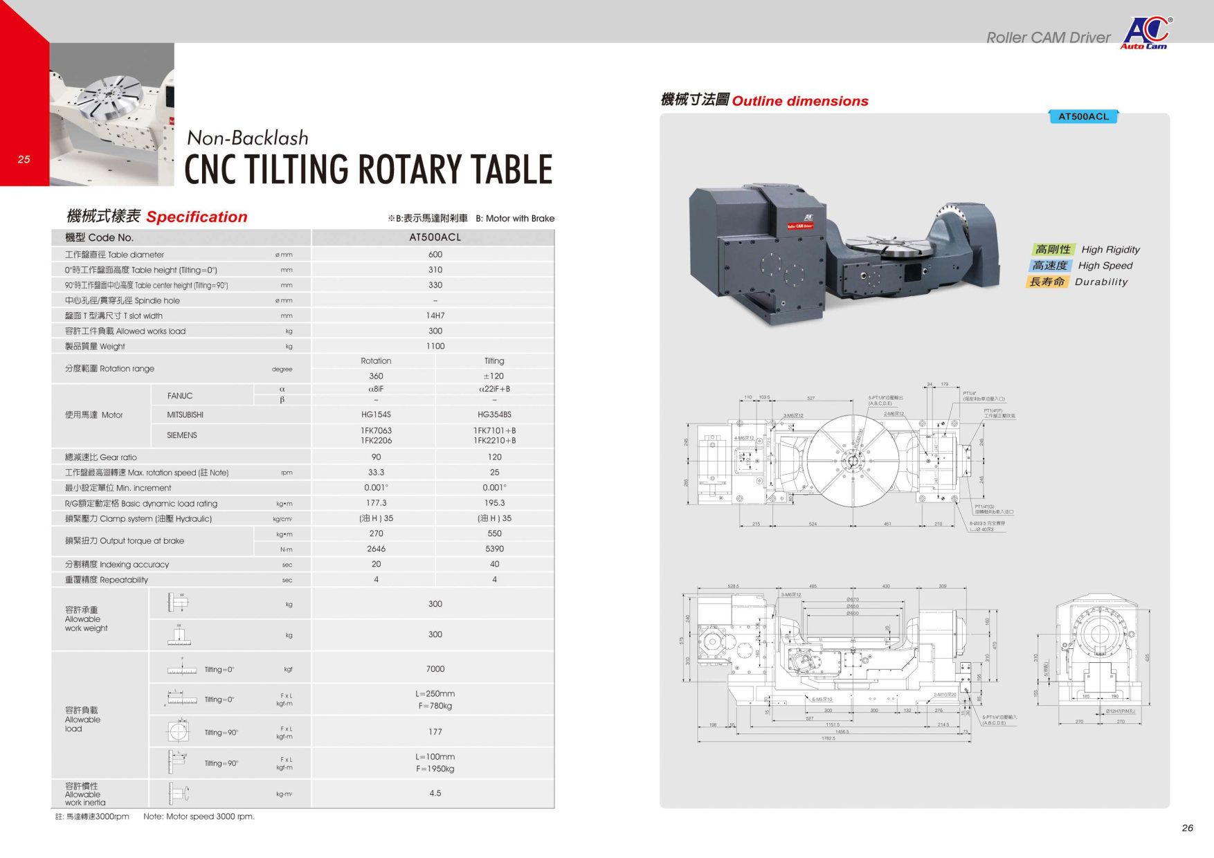 五轴 ф350-500 AT350ACR/350ACB/AT400AC/AT500ACL 数控转台